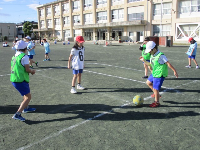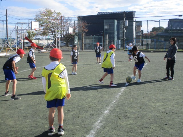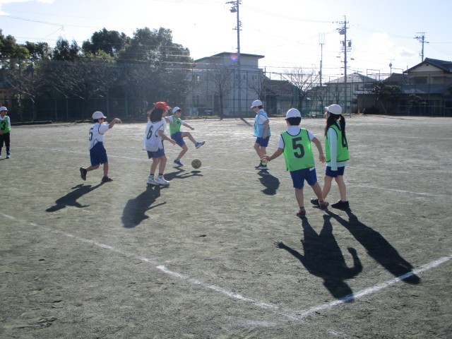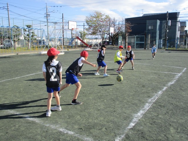 コートが広くないので難しそうでしたが、広がってパスを回そうと頑張っていました。