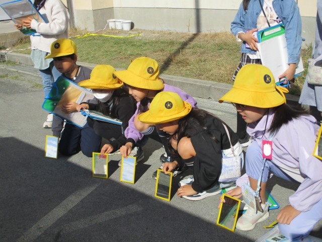 絵が描かれたまとに光を当てようと立つ場所や鏡の向きを考えていました。