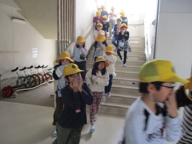 今日は地震のあと、理科室から出火、火事のときの避難の仕方もしました。
