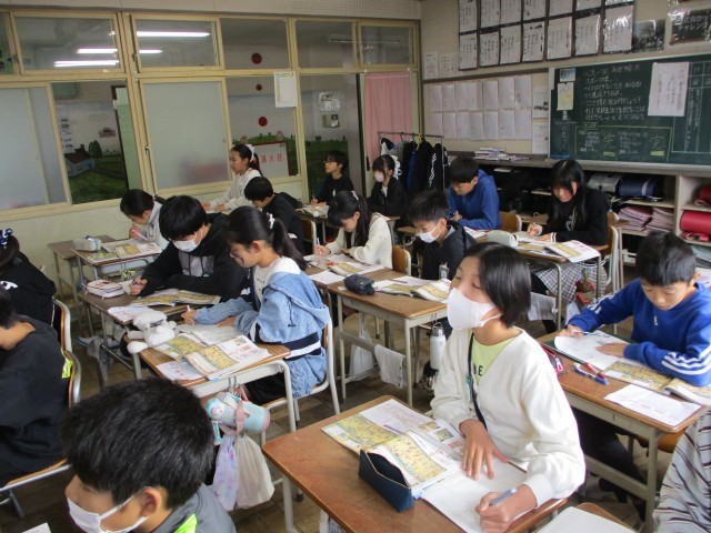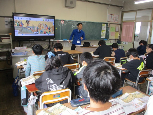 今から200年ほど前の「凞代勝覧(きだいしょうらん)」という絵巻物を見て気づいたことを話し合いました。