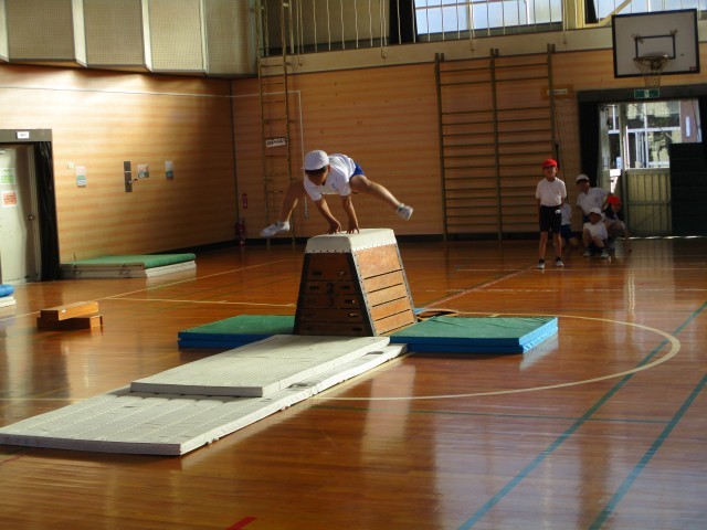 跳び箱の練習をしています。