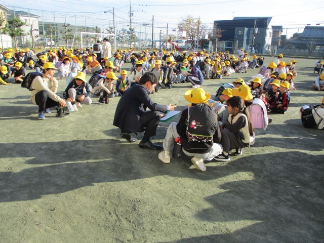 通学班が仲良く安全に登下校できているか通学団担当先生と確認をしました。