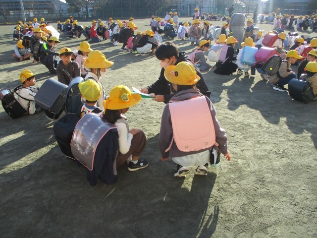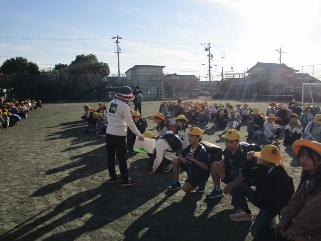 一斉下校の時にミニ通学団会を行いました。