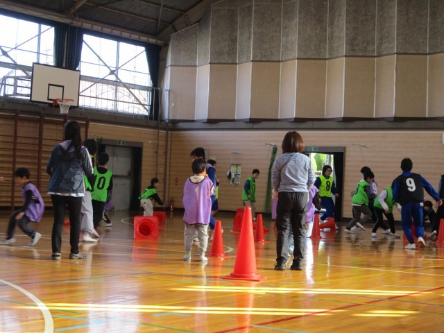 「ピグミンチーム」「上弦チーム」「最強フレンドチーム」に分かれてボール運びゲームやコーン倒しゲーム、ドッジビーをして楽しみました。