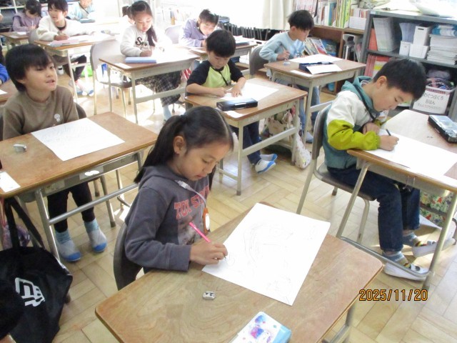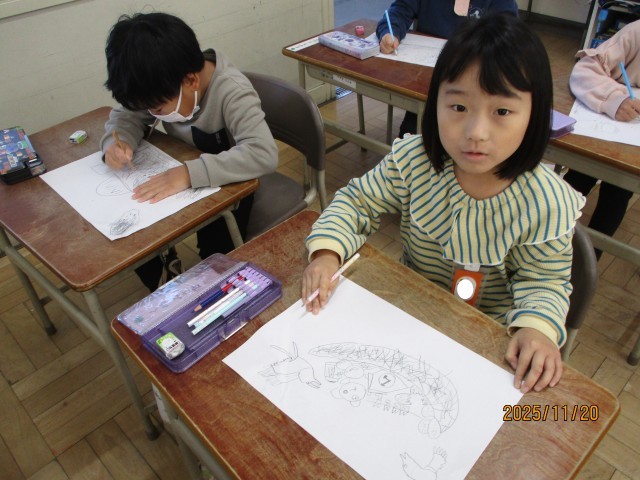 楽しそうに巣の中にいろいろな絵をかいていました。