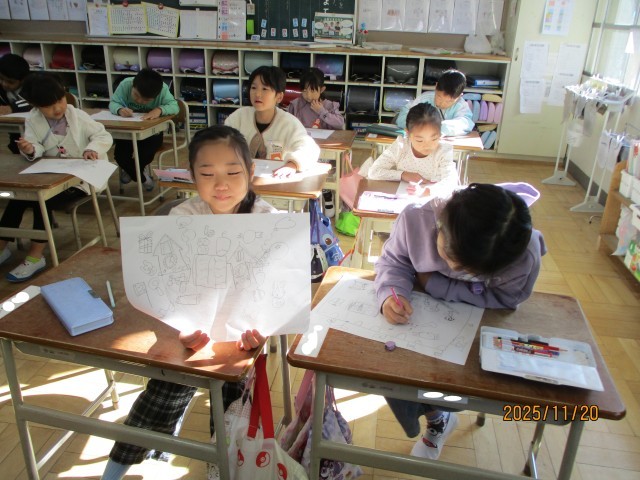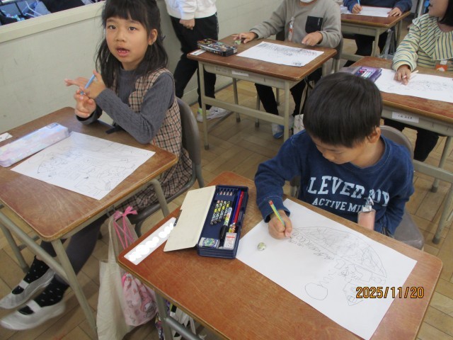 「がらがら ガラクタ!?」というお話を先生から読んでもらって感想画をかくことになりました。