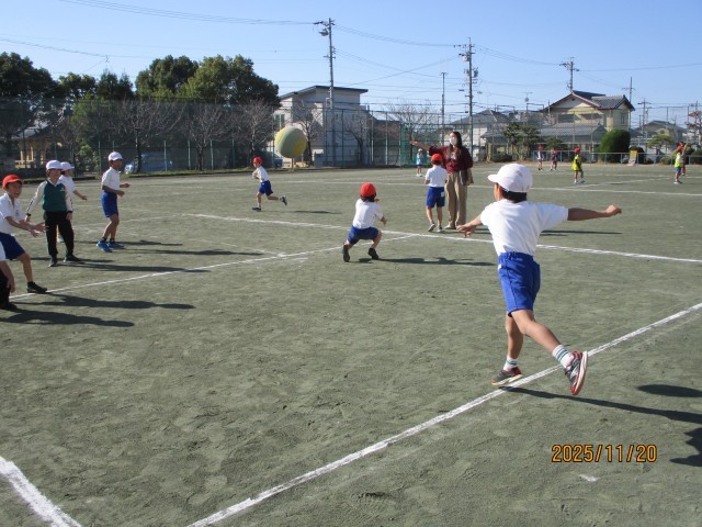 ボールを2つ使ってゲームをしたので逃げる方はたいへん。