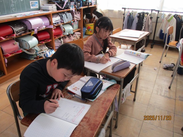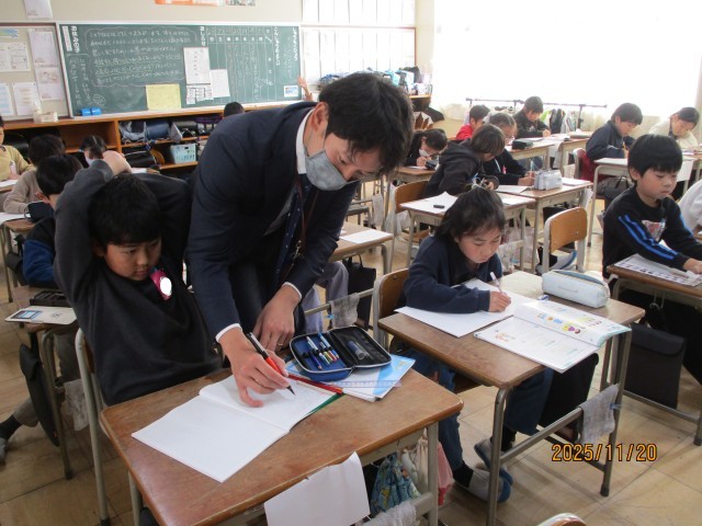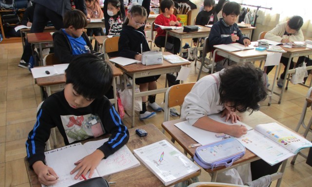 先生の説明をよく聞いて一生懸命考えて問題を解いていました。
