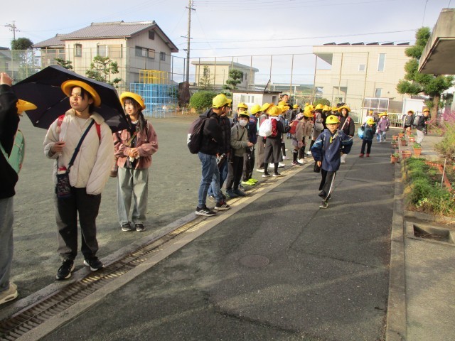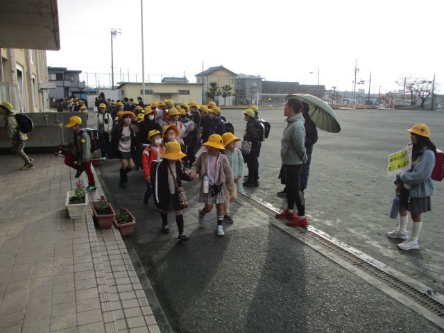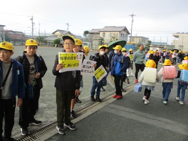 あいさつ運動2日目。今朝は中学校のお兄さんお姉さんも一緒にあいさつ運動をしてくれました。