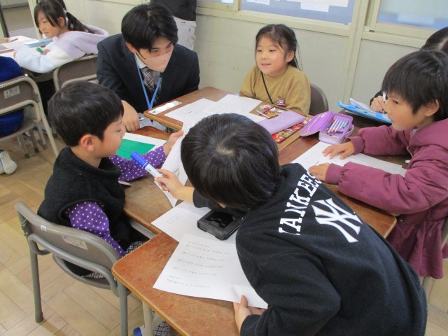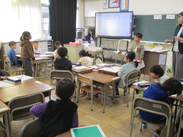 今日は研究授業で低学年の先生たちが参観している中で授業を行いました。