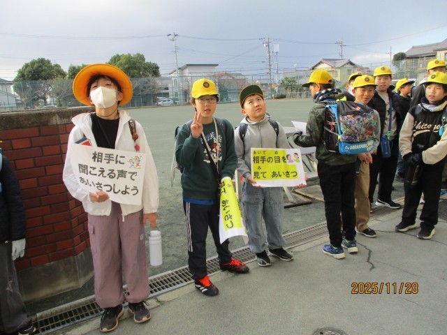元気なあいさつ笑顔であいさつ。あいさつで自分の心も相手の心もあったかくさせたいですね。