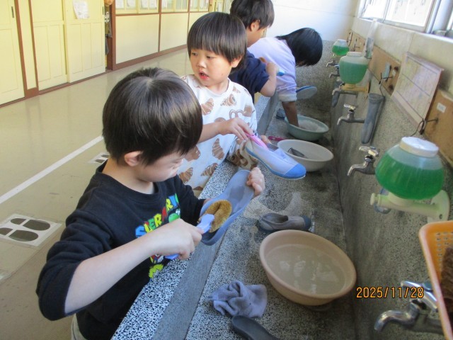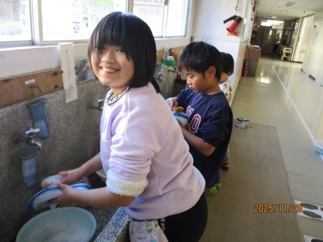 小さい学年の子も慣れた手つきでゴシゴシ洗っていました。