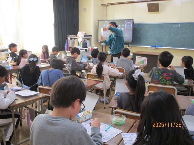 はじめてのことなので子どもたちは真剣に先生の話を聞いていました。