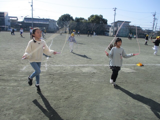 中間放課にはリズム縄跳びをしている子が増えてきました。