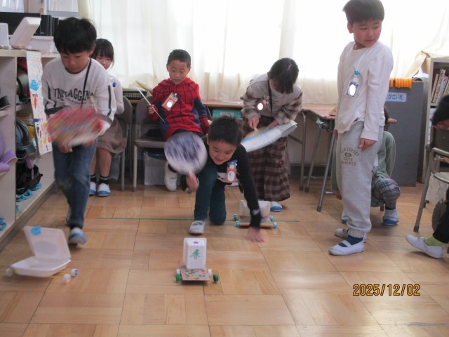 生活科でつくった動くおもちゃを使っておもちゃまつりをしました。