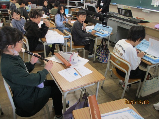 リコーダーや鍵盤ハーモニカで楽しくつくりました。
