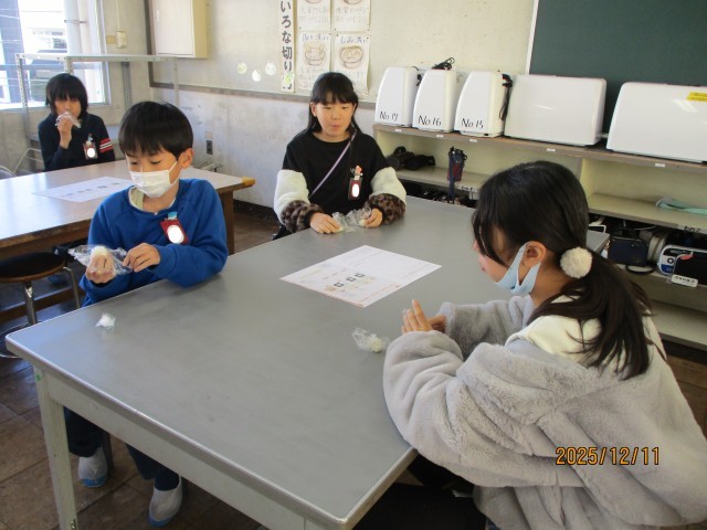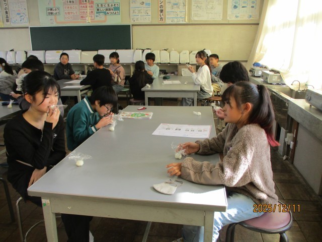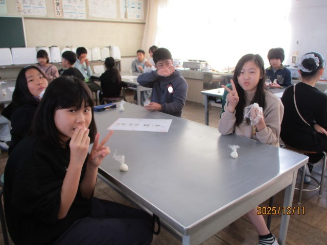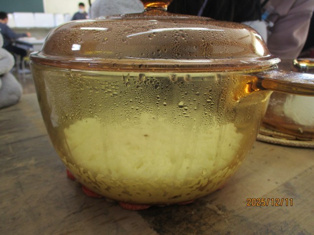家庭科の時間に透明な鍋で米を炊いてごはんになるまでを観察しました。