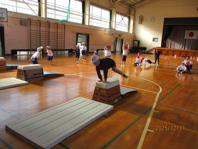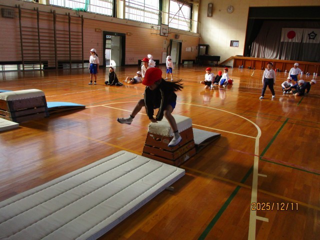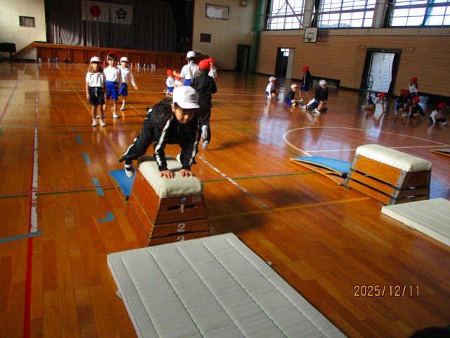 今日は跳び箱3段を開脚跳びで跳んでみました。