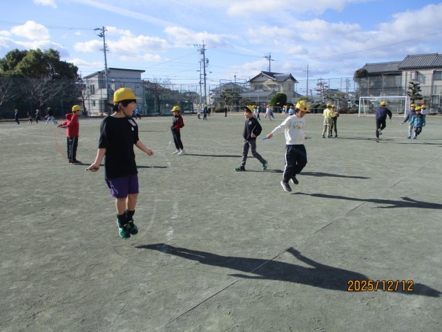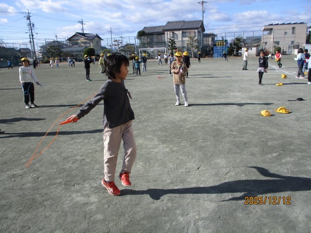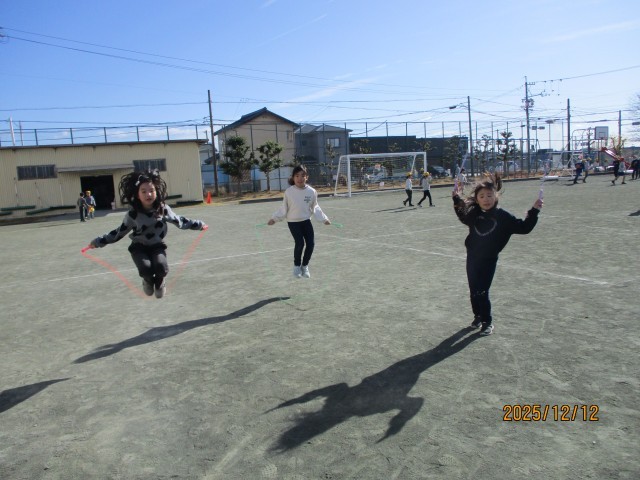 中間放課は寒さに負けずみんな元気いっぱいでなわとびをしている子がたくさんいました。