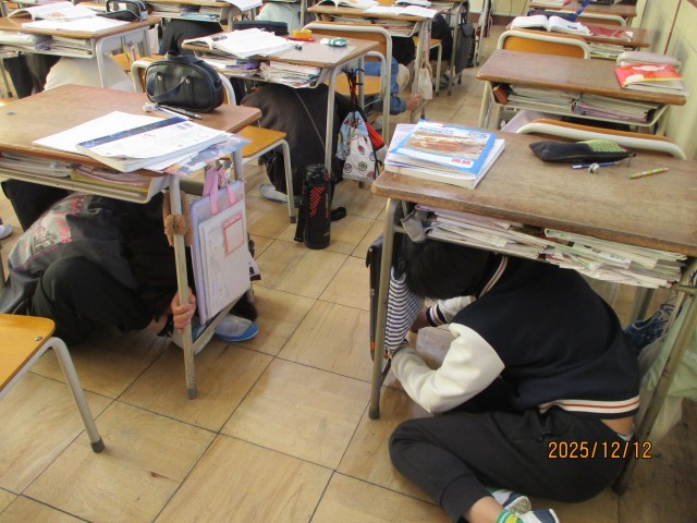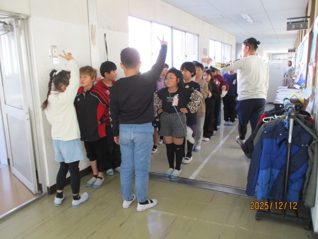 放送の指示で廊下に並んで2時避難を行うまでで今日は訓練終了です。