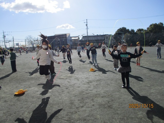 リズムなわとびや鬼ごっこで遊んでいる子が多かったです。
