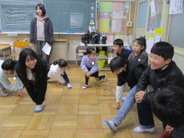 じゃんけん列車やリーダーさがし、記号ゲームなどで楽しく遊びました。