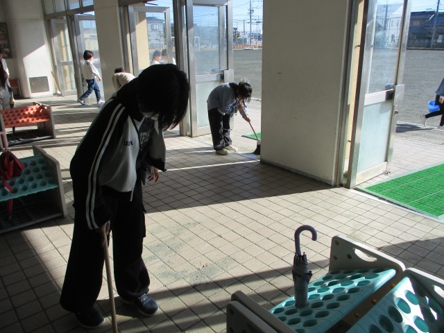 水ぶきやほうきでごみをとったりごみを捨てたり各掃除場所で一生けん命取り組んでくれました。