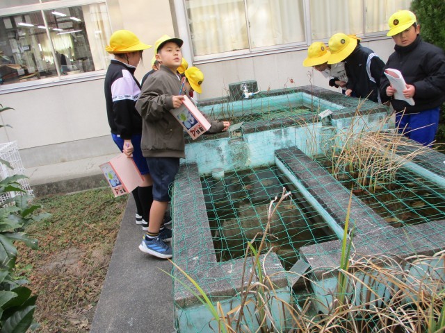 観察池にはメダカがいるはずなのですがなかなかみつかりませんでした。