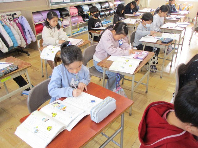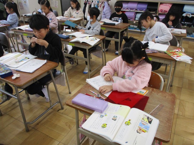 国語の授業で絵に表されている様子がわかるように文をつくりました。