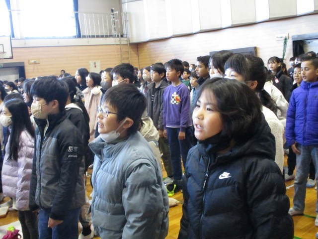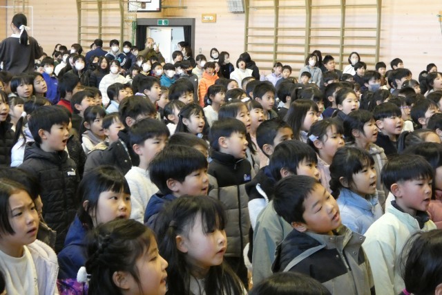 全校児童で校歌のプレゼントをしました。