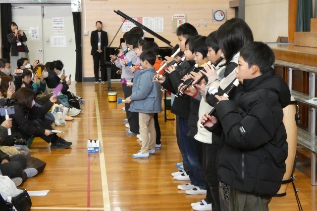 音楽の授業や、ハーモニータイムで練習してきた「さくらぶえ」と「村まつり」