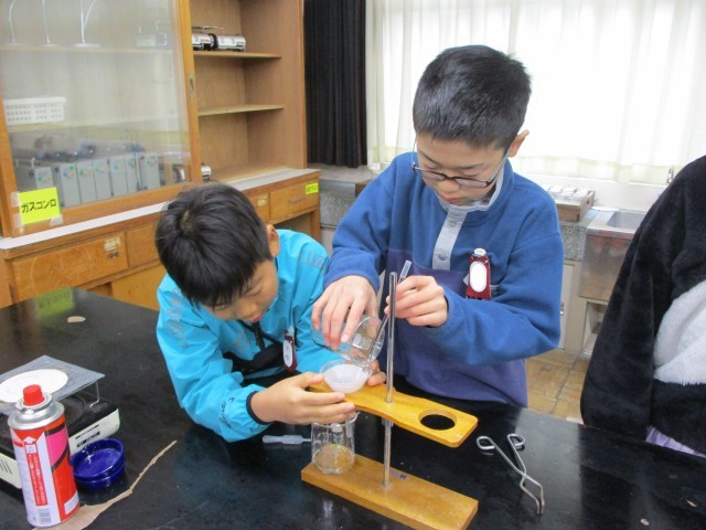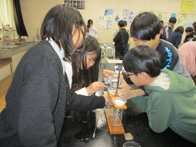 グループで安全に気を付けて実験をしました。