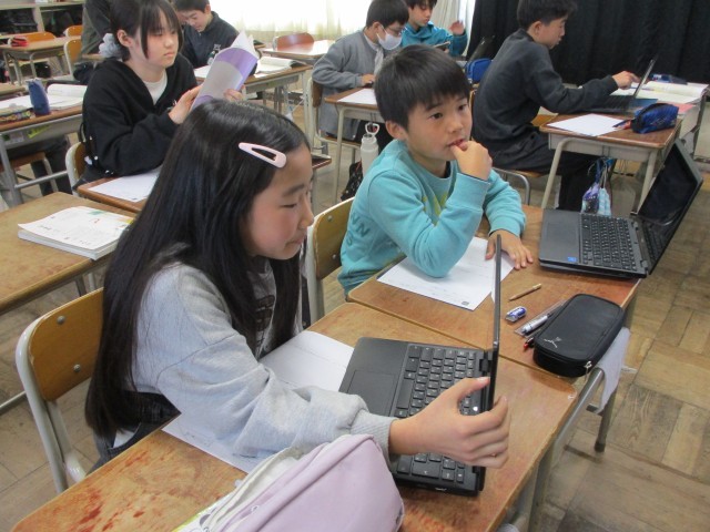 多くの子どもたちはすぐには出てこないのでクロームブックで名言を検索して自分にぴったりくるものを探していました。