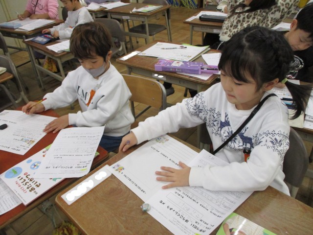 2/2(月)1年 おてつだい報告書をかこう