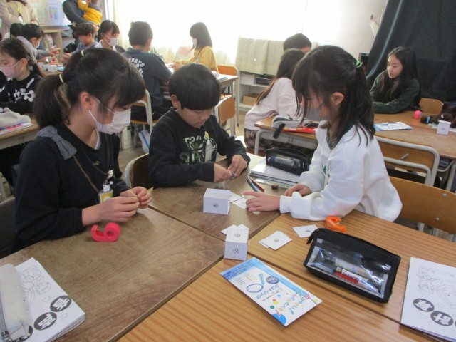 算数の時間に画用紙で箱をつくりました。