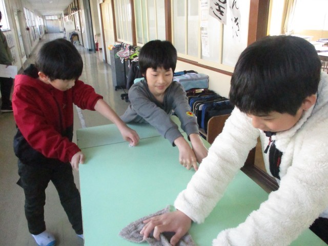 給食委員会では、配ぜん台をきれいにしました。