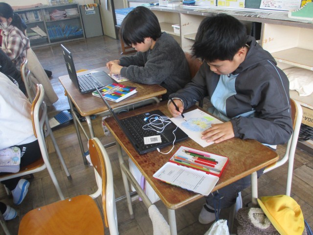 環境委員会では、クロウムブックでパンジーを調べて描きました。
