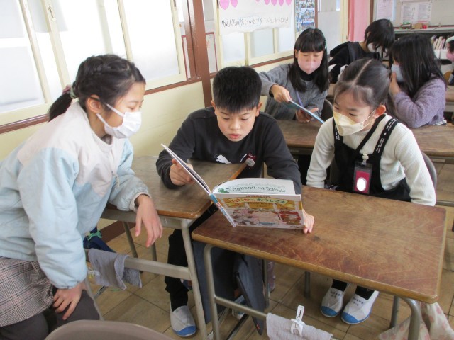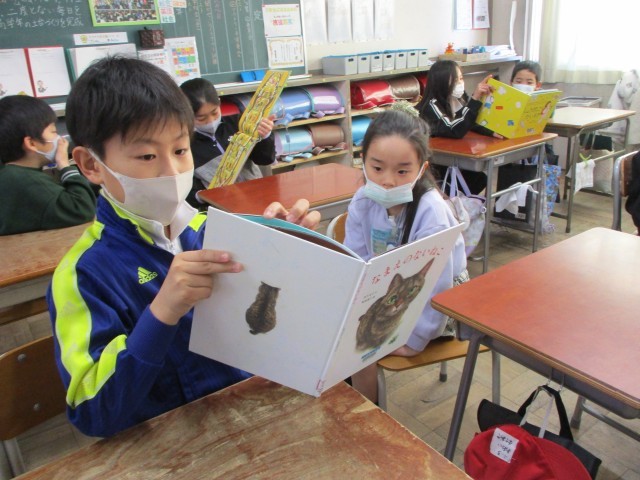 朝の時間にペア読書を行いました。