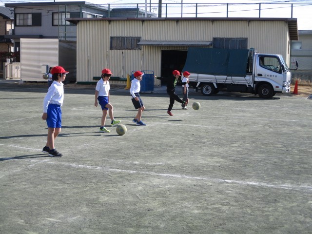 まっすぐ遠くへボールを蹴ることができるようがんばって練習していました。