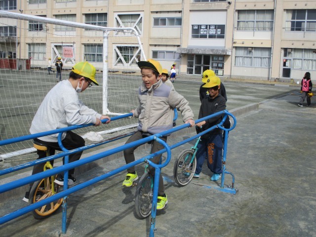 1年生お6年生が一緒に鬼ごっこをしたり友達とフラフープや一輪車をしたりして楽しそうです。