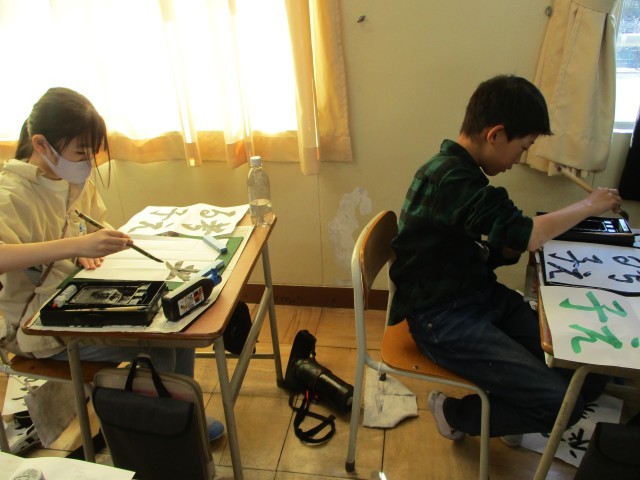 半紙に4文字を書くのは難しいです。