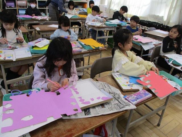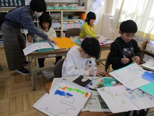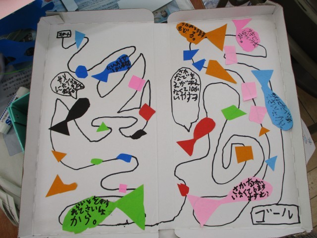 図工の時間におはなしすごろくをつくっています。