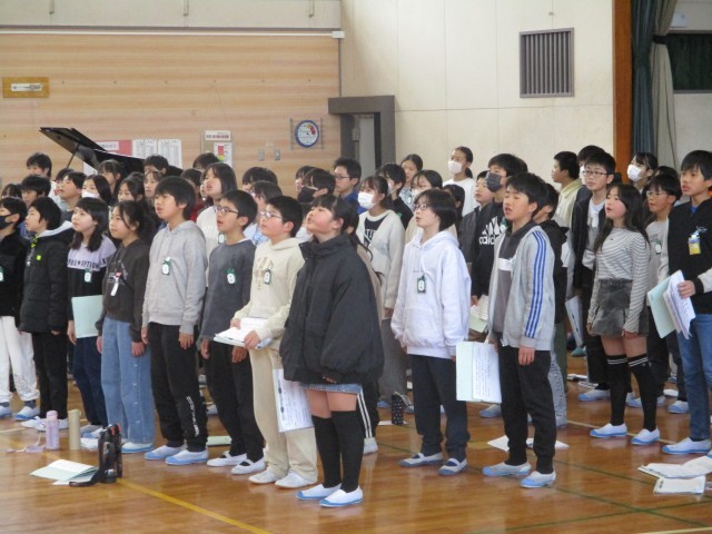 2/20(金)6年 「6年生を送る会」の練習 公開日 2026/02/25 更新日 2026/02/25 6年 来週の木曜日の本番に向けて、並び順や流れなどを確認しました。それぞれの児童が、どんな気持ちで臨みたいかを考え、練習に取り組むことができました。 6年生 ひまわり組