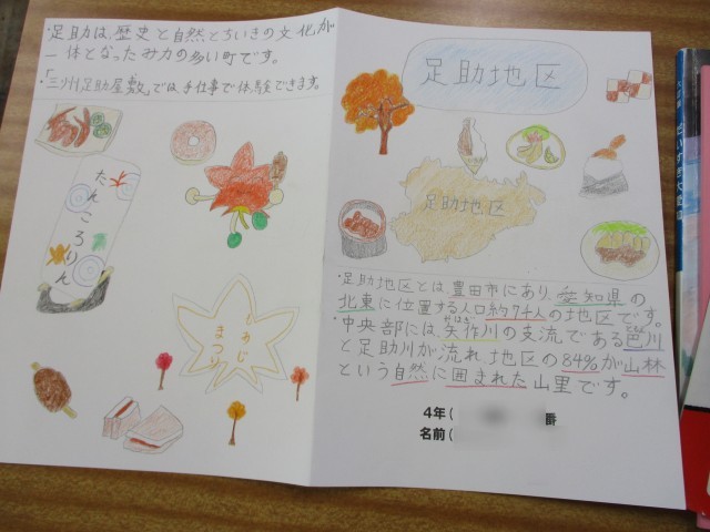 社会科の時間に足助地区と日間賀島のリーフレットをつくりました。