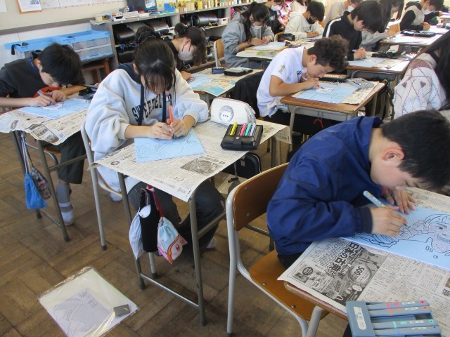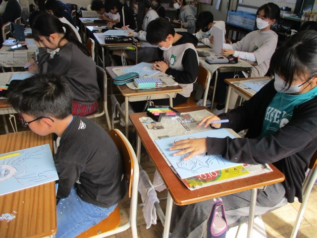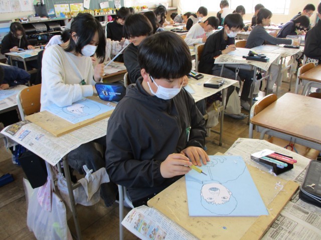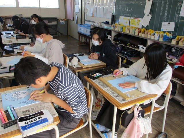 図工の時間には自画像を版画にしようと取り組んでいます。