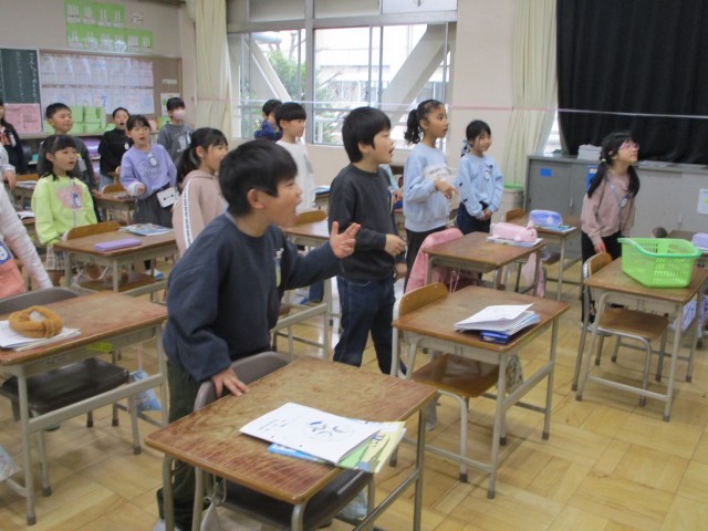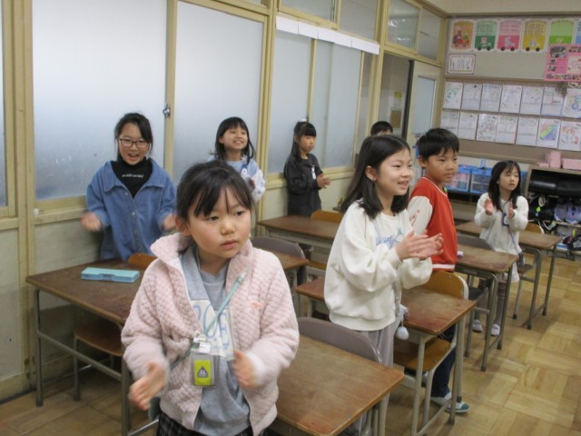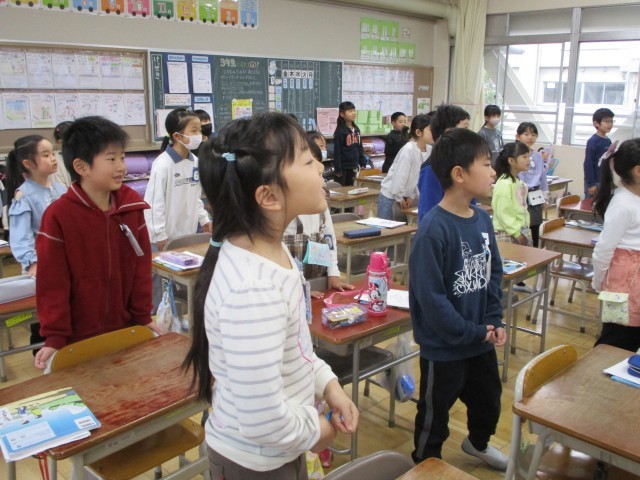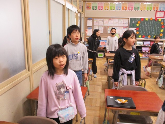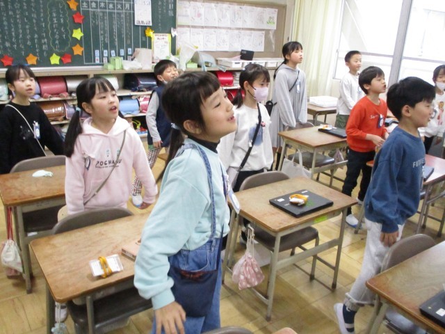 2年生の教室から元気な歌声がきこえてきました。