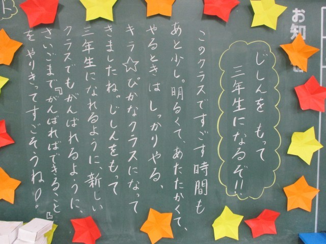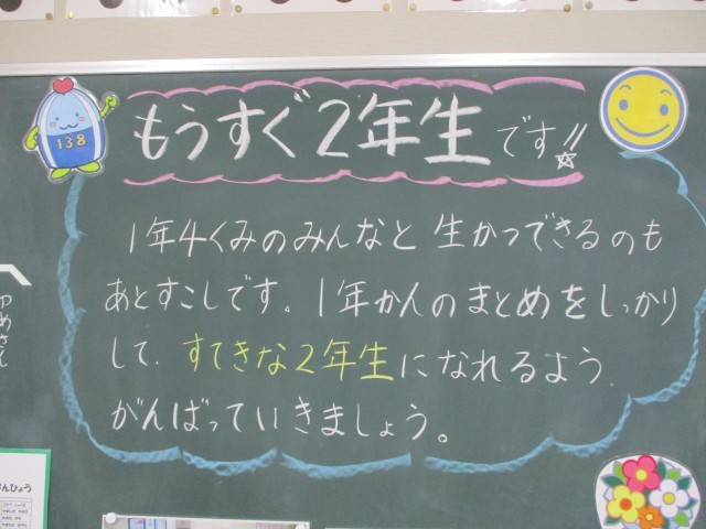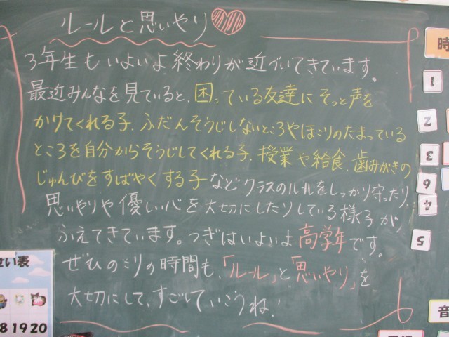背面黒板の先生のメッセージには「一日一日大切に過ごしていきましょう」