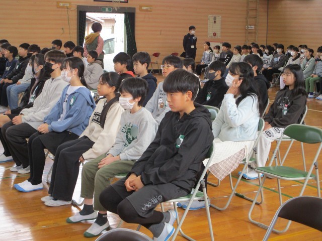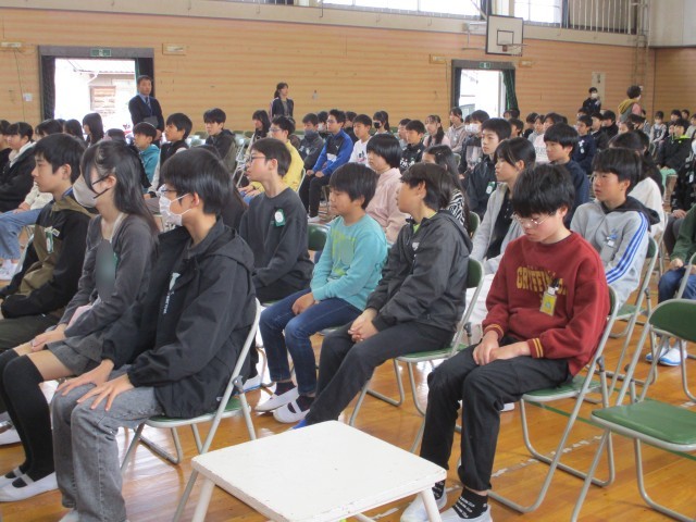卒業式にむけての心構えや座席の座り方、起立、礼、着席 などの所作について教えてもらいました。