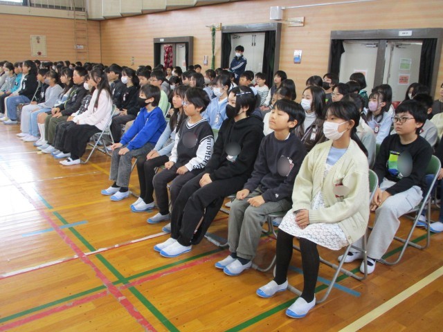 2時間目に5・6年生合同で卒業式の練習を行いました。