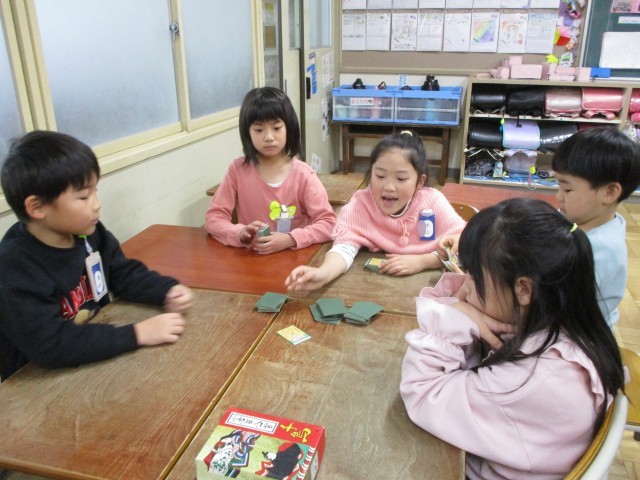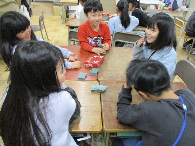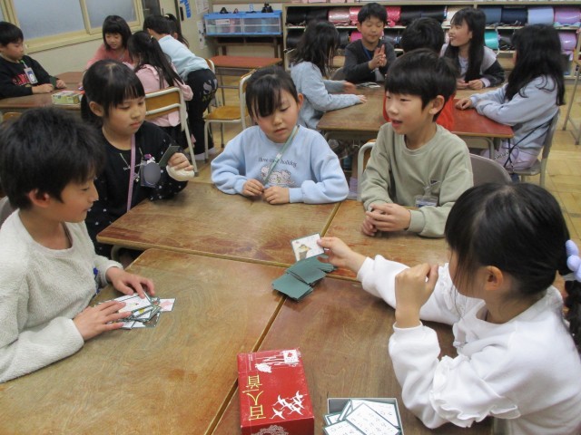 グループごとに百人一首をつかって「坊主めくり」をしました。